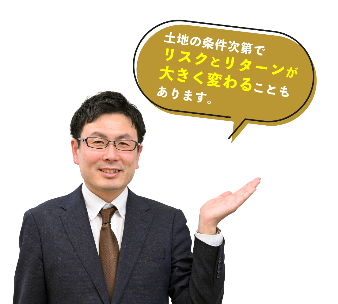 また、初期投資額も気を付けたいポイント。アパート・マンションを建てて税額は下がったけれど、納税資金が足りなくなっては本末転倒。初期投資を抑えつつ、最大限メリットを享受できる活用方法を検討すべきです。将来売却する可能性を考えても、利回りが安定している物件の方が当然有利です。土地の特性にあった活用をすることで、それが実現できます。