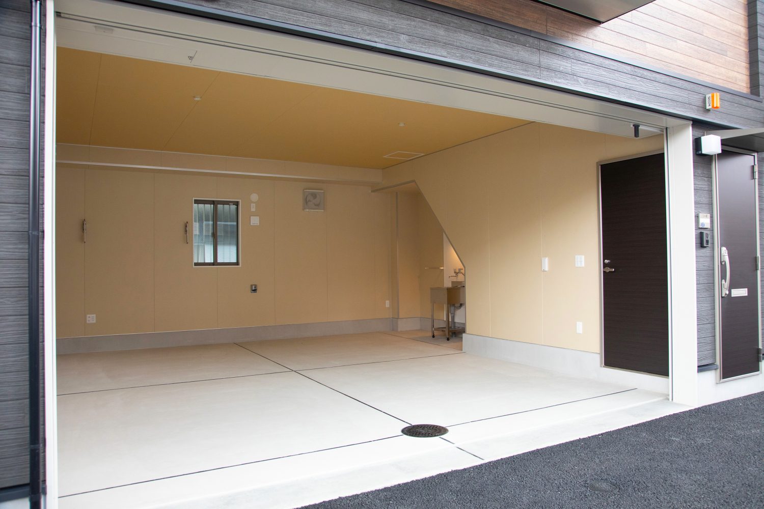 また、ガレージと外部との境目は段差のないフラットな形状ですが、ガレージの内部は水はけを考慮し、4%というほんのわずかな傾斜がつけられています。この「4%」の傾斜角にも、ユーザーの利用シーンを想定したこだわりが込められているのだとか。
