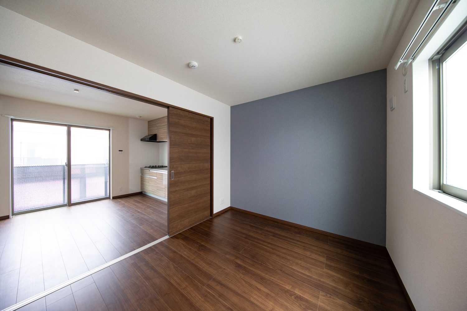 「玄関ドアのほかに、ガレージ内から室内へ入れるドアも設置しています。たとえ雨が降っていても濡れることなく、ガレージと居住スペースを行き来できるようにしました。また、階段を上り、居室に入る手前に洗面台があるのですが、それは、ガレージ作業で汚れた手を洗ってから居室に入れるように、という配慮から設置したものです。キッチンや浴室についても、賃貸ガレージハウスユーザーは30〜40代以上の方が多い傾向にあることから、こうしたユーザーの方が暮らしやすいよう、料理しやすい幅広タイプのキッチンや、浴室は浴槽の大きい1616サイズのユニットバスを採用しました。夢のガレージライフをできるだけ贅沢な空間で過ごしていただきたいという想いからさまざまな工夫を取り入れています。ガレージハウスというだけあって、どうしてもガレージスペースが注目されがちですが、居住スペースも快適に過ごせるレイアウトにしています。」(大林さん)