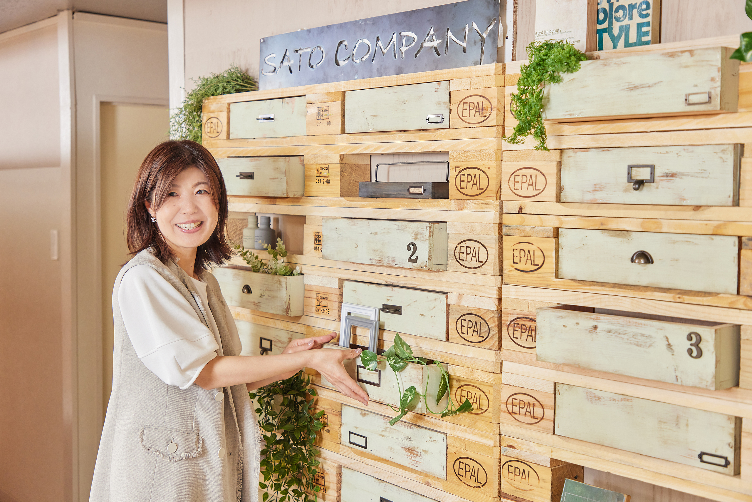 お話を伺ったのは、株式会社SATO COMPANY 代表取締役の館野真理子さん。パレットを用いたDIYを通して、ご自身もものづくりの楽しさに目覚めたそう。