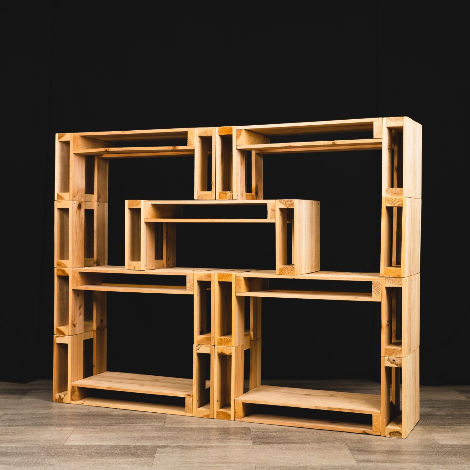 壁に立てかけるだけでもインテリアとして機能します。木と木の間のスペースをブックラック代わりに使ったり、傘立てやディスプレイとして活用したり。また、植物を飾れば壁面緑化も楽しめます。