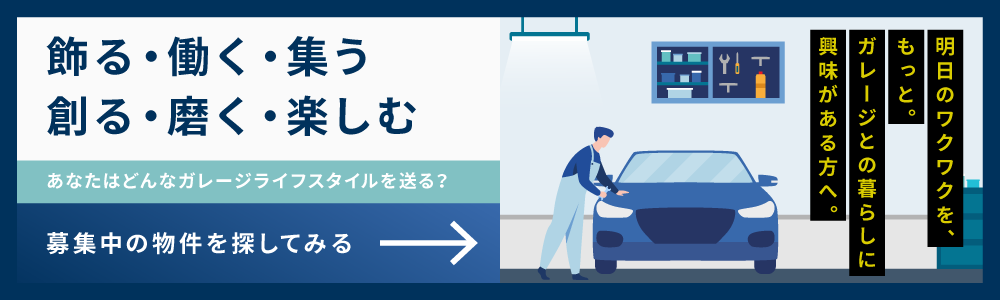 ご希望の地域の物件が満室の場合、「入居待ち登録」することで、エリア条件にマッチした空室情報を得ることが可能です。(※)「いつかは憧れのガレージハウスに住みたい」「セカンドハウスとしてガレージハウスを持ってみたい」と思っていた人はもちろん、ガレージハウスを見て「こんな自分だけのスペースが欲しかった!」「こんなことしてみたい!」と想像が膨らむ人も。さぁ、今こそガレージ付賃貸住宅という選択肢を検討してみませんか?
