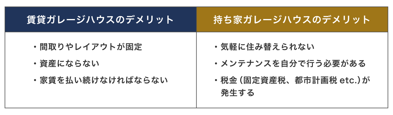 賃貸ガレージハウス VS 持ち家ガレージハウス デメリット比較