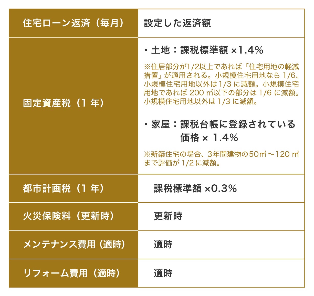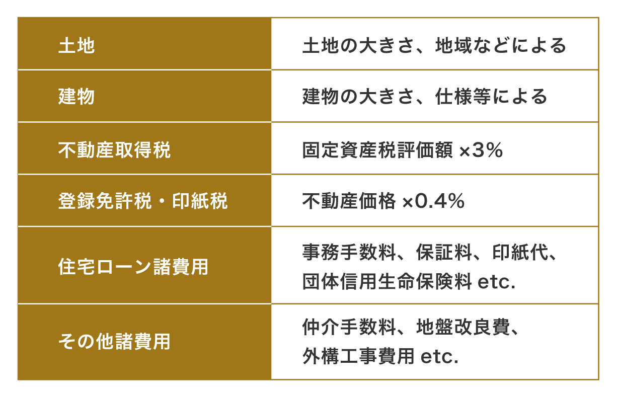 <持ち家ガレージハウスにかかるコスト例>