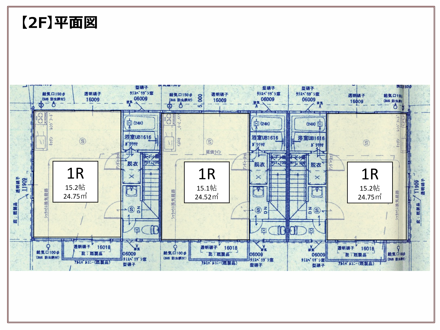 - 1R(A・C号室:15.2帖、B号室:15.1帖)