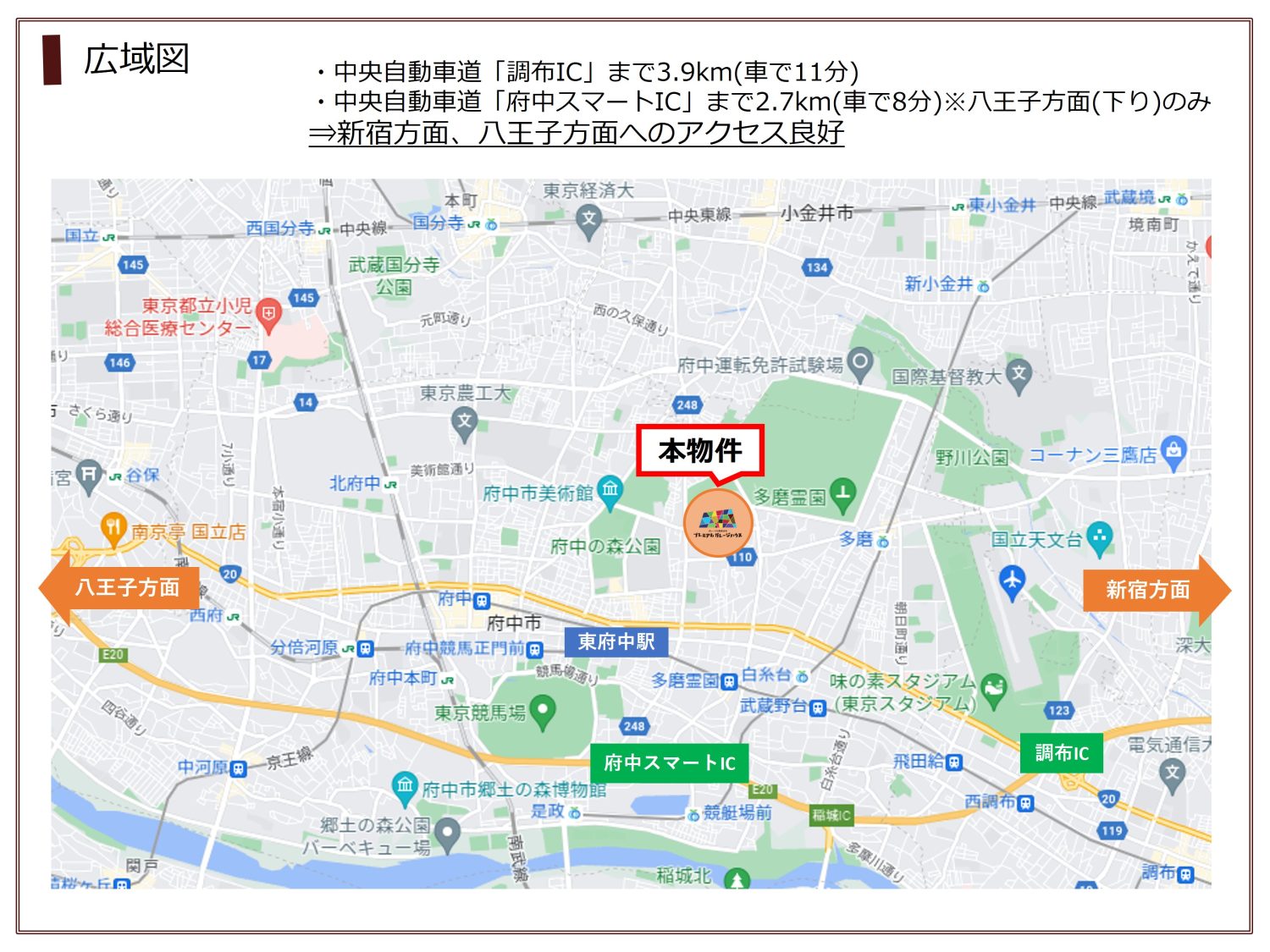 中央自動車道「府中スマートIC」まで2.7km(車で8分)※八王子方面(下り)のみ