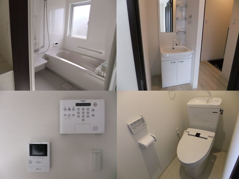 2階の設備は、大型バスユニットに洗面台と温水洗浄便座付トイレ! アルソックのセキュリティ盤にモニター付インターフォンも標準設備!