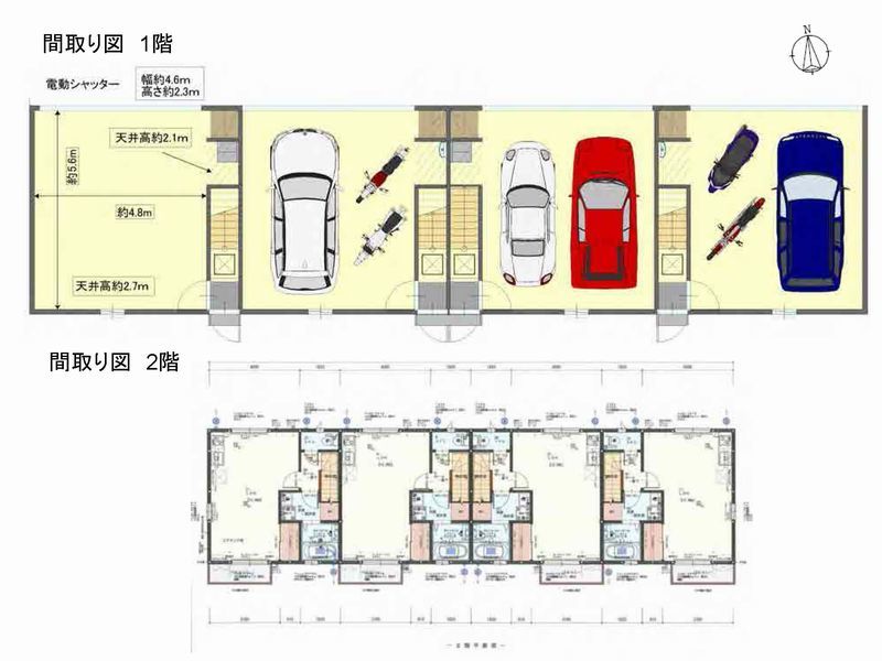 - 2台用大型ガレージ 幅 約4.835m×奥行き 約5.689m