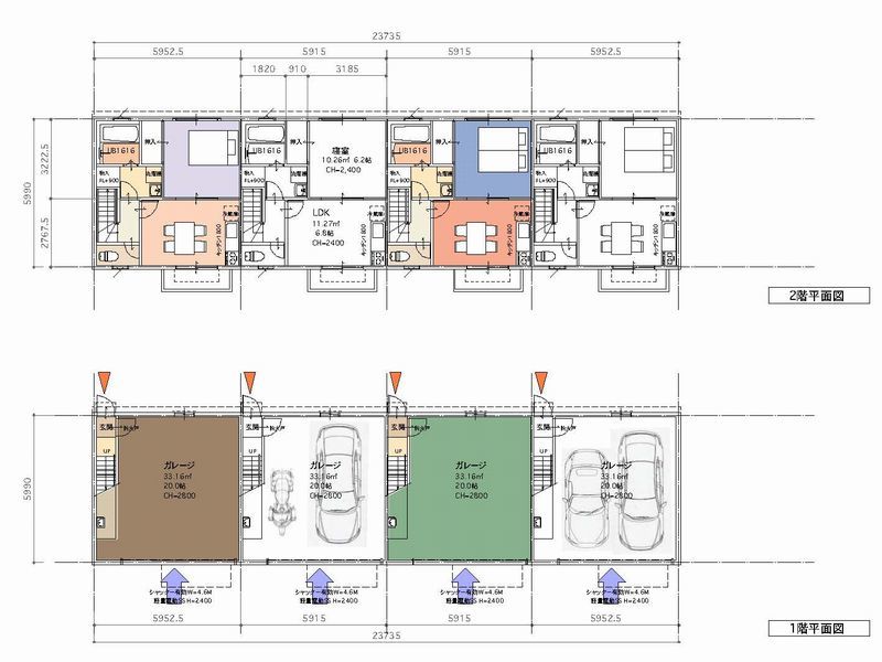 - 2台用ガレージ 幅 約5.8m×奥行き 約5.7m
