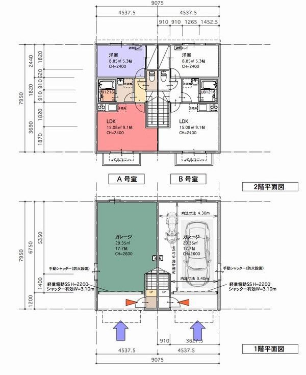 シャッター開口部:幅約3.1m×高さ約2.2m