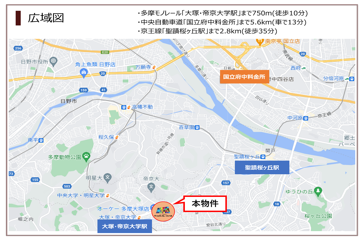 中央自動車道「国立府中料金所」まで5.6km(車で13分)