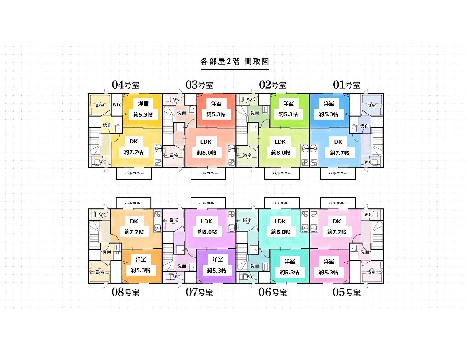 - 【01/04/05/08号室】DK:7.7帖、クローゼット付洋室:5.3帖