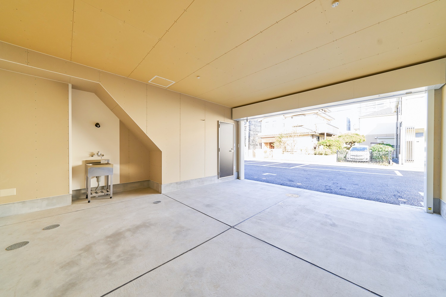 電動リモコンシャッター付、ガレージ内水道(給湯)付