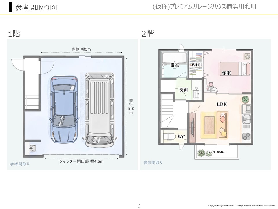- 2台分大型ガレージ 幅 約5.0m×奥行き 約5.8m