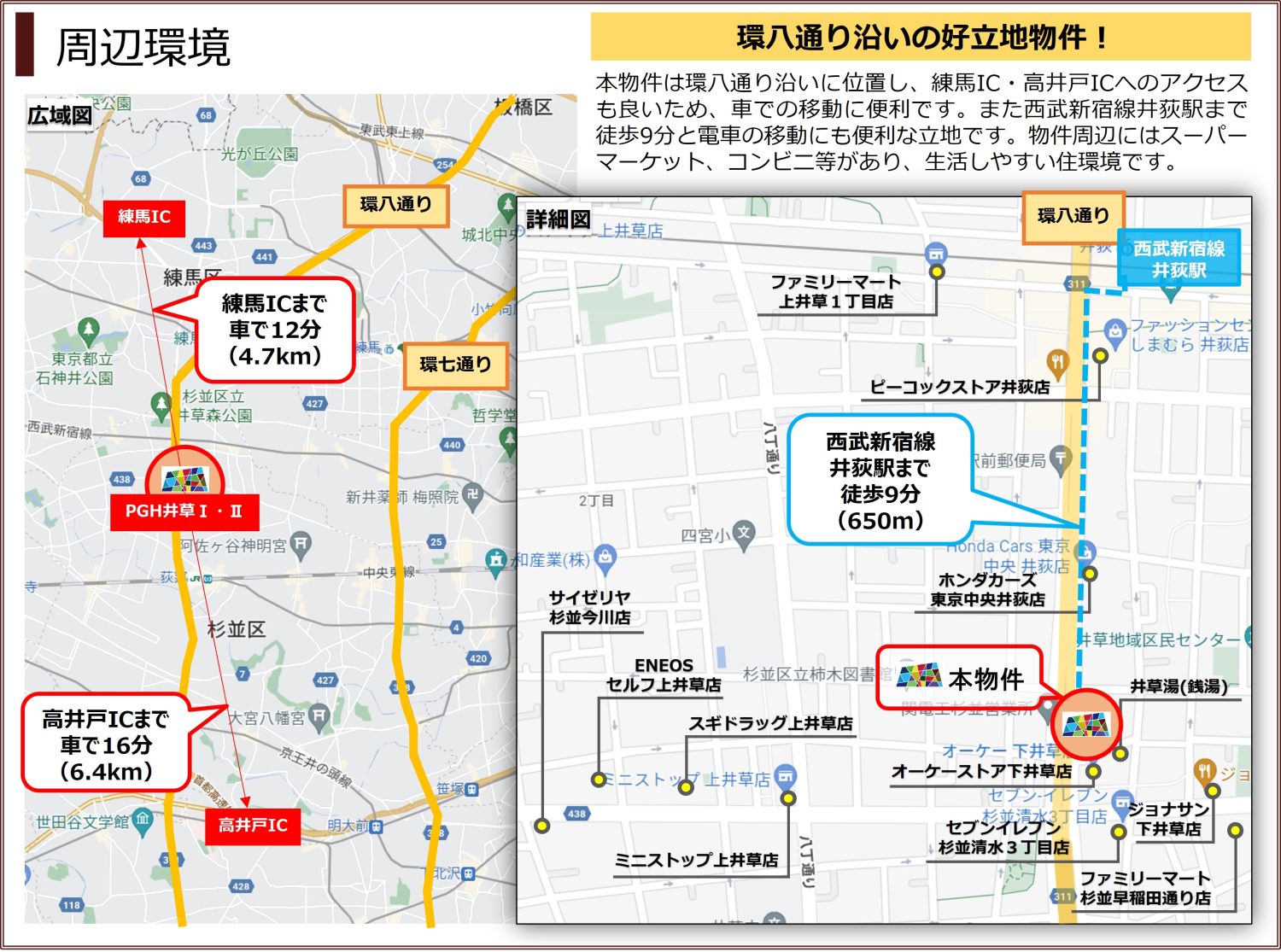 ・首都高速4号新宿線「高井戸IC」まで6.4km(車で16分)