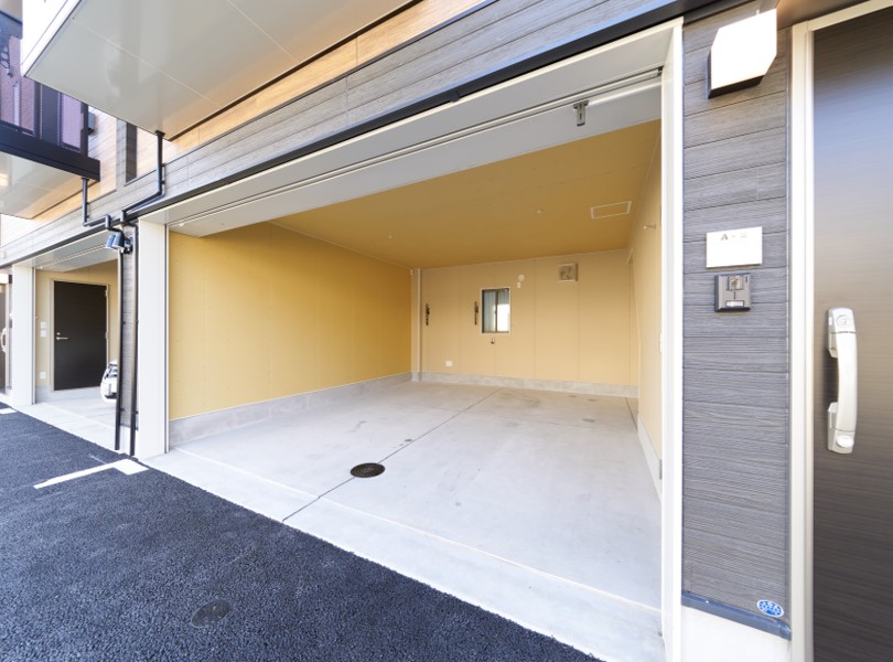 B・C・D・E・F号室 車2台分収容可能ガレージ+1LDKの居住スペース+屋外専用一時駐車スペース(車1台分)