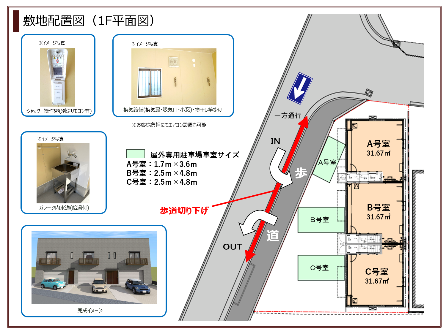 ・1Fガレージはトランクルーム・ストレージ・物置・駐車場利用に便利