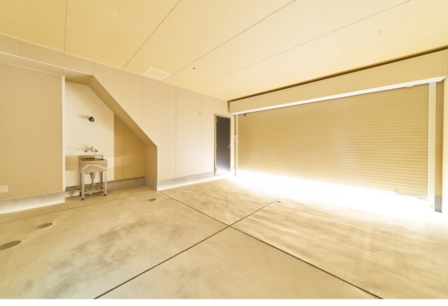 電動リモコンシャッター付、ガレージ内水道(給湯)付