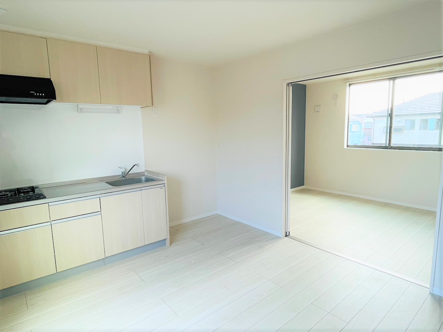 ユニットバス(追焚き機能付・1616サイズ)、独立洗面化粧台、トイレ(温水洗浄便座付)、システムキッチン(2口コンロ)
