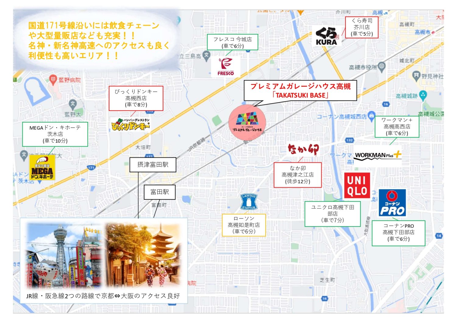 ・名神高速道路茨木IC 約5km(車で約15分)