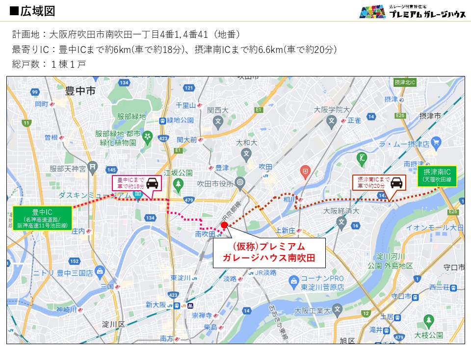 天理吹田線『摂津南IC』約6.6km(車で約21分)